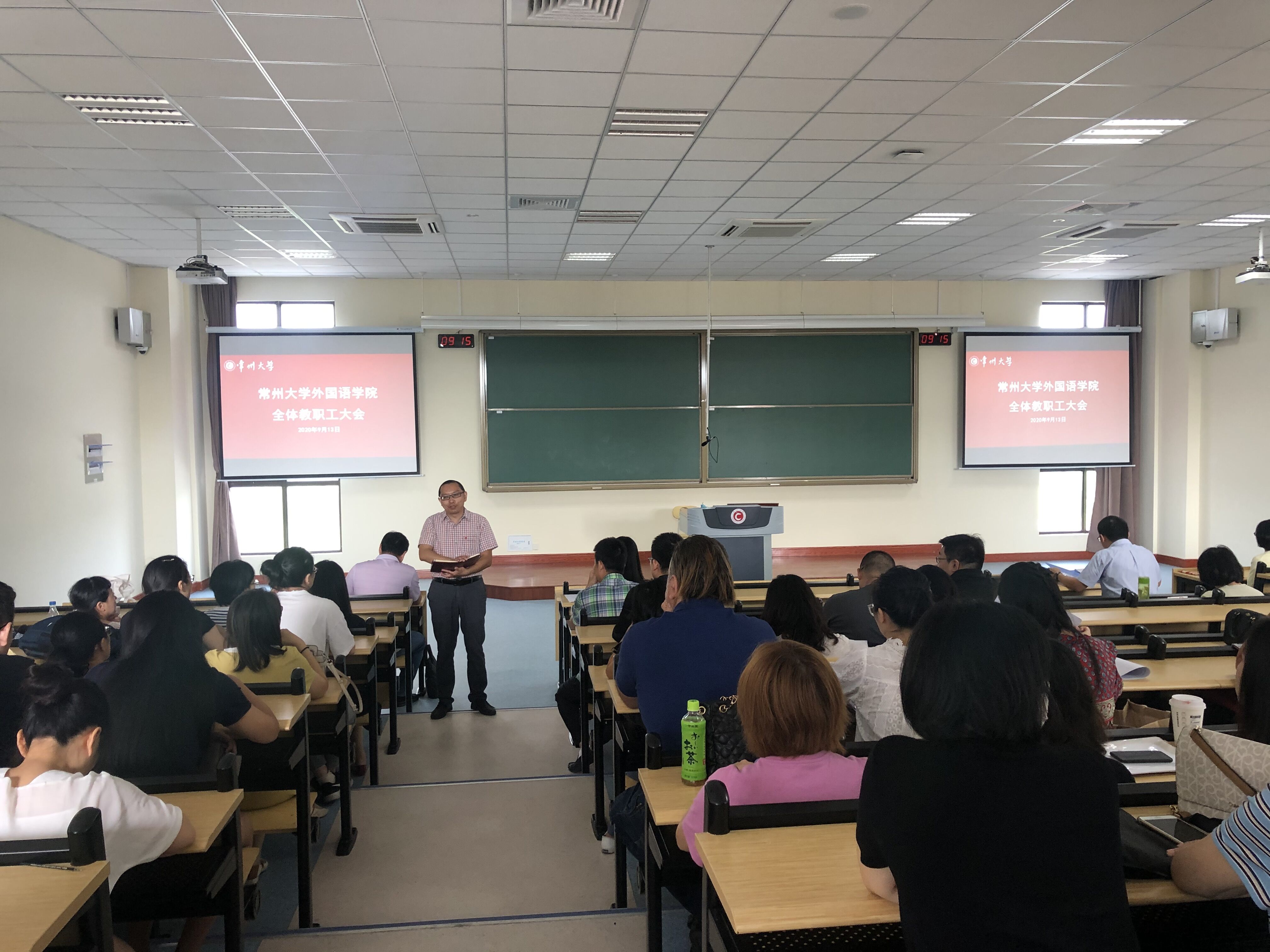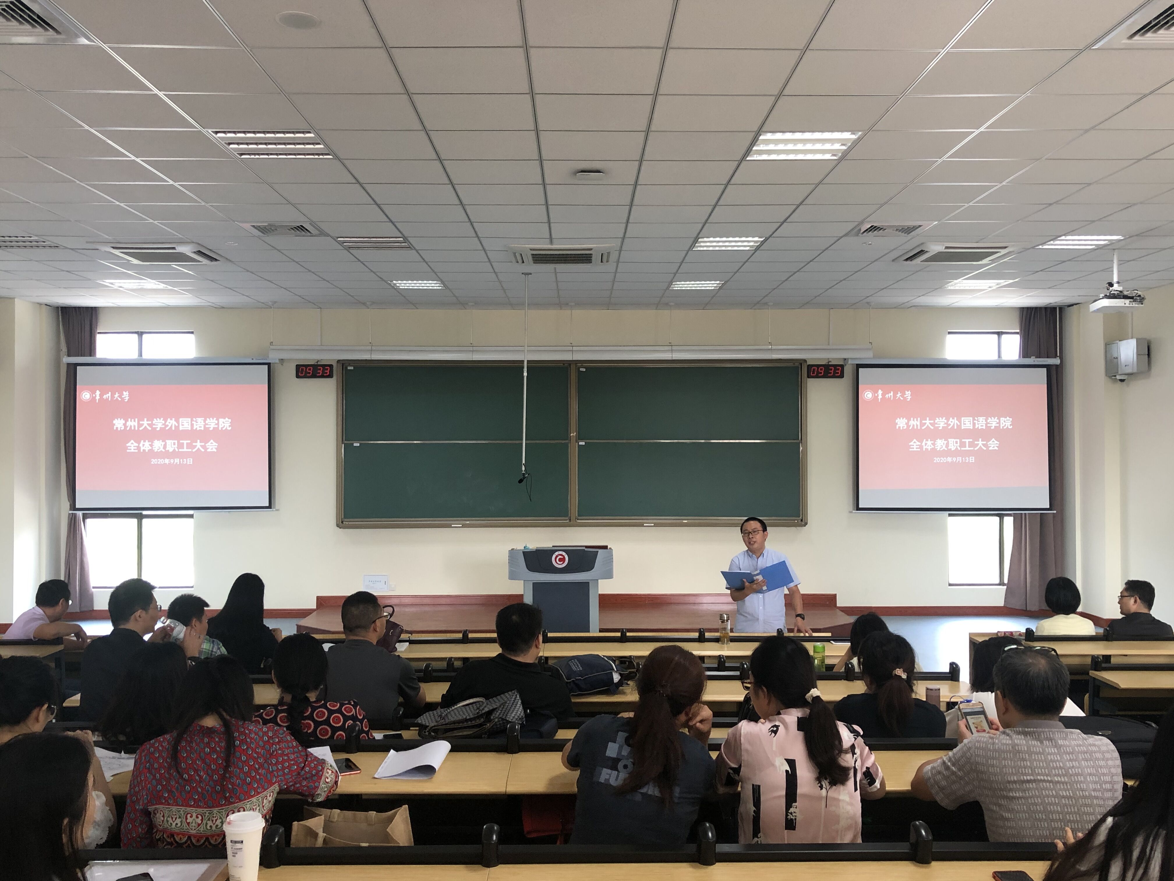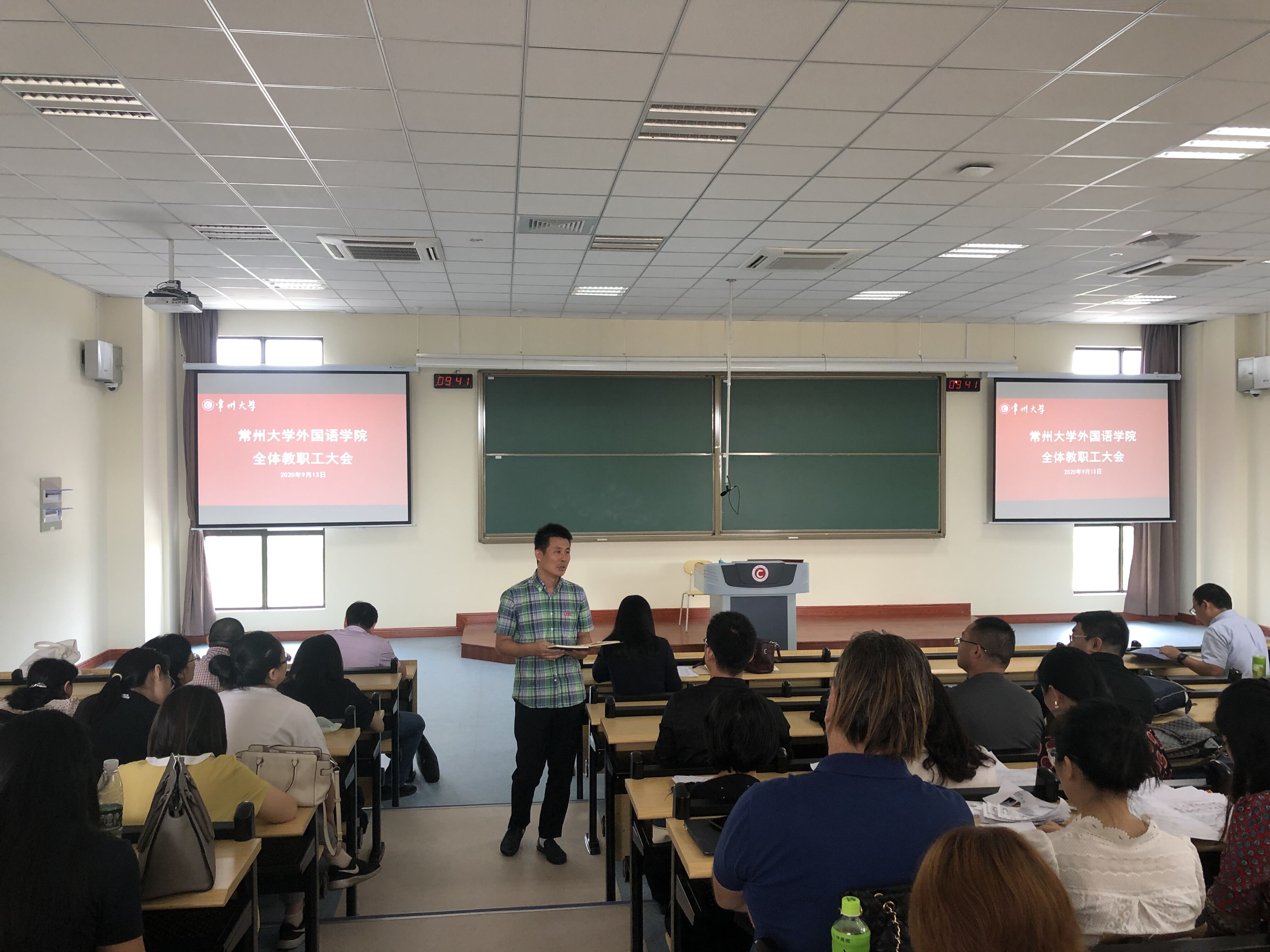为全面做好2020年秋季学期各项工作,贯彻落实好学校新学期工作部署会议精神,有序做好在疫情防控常态化形势下的开学工作,9月13日上午,外国语学院在教学楼X3阶召开2020年秋季新学期教职工大会,会议由院党委书记薛勇主持,全体教师参加。
