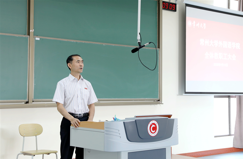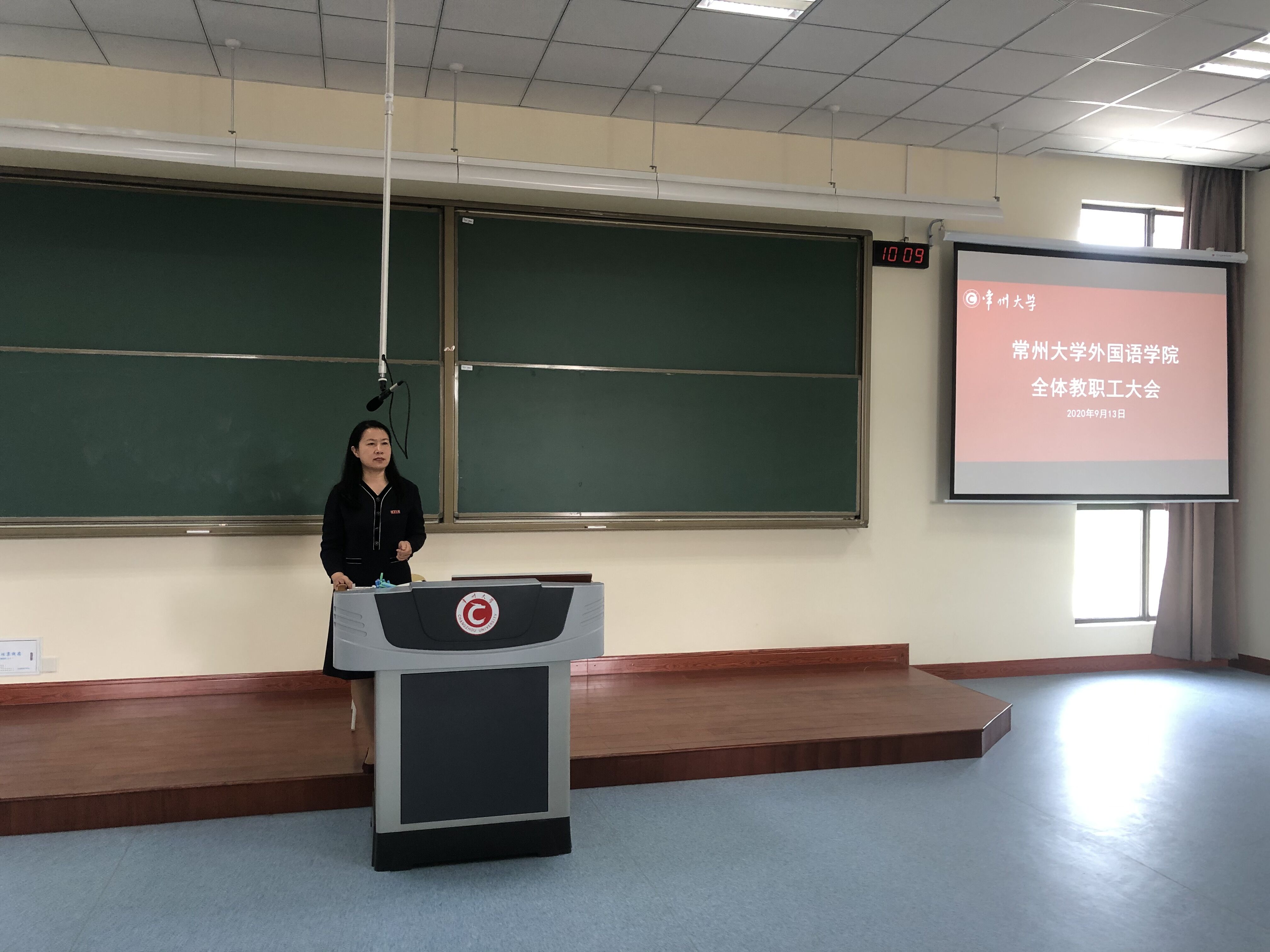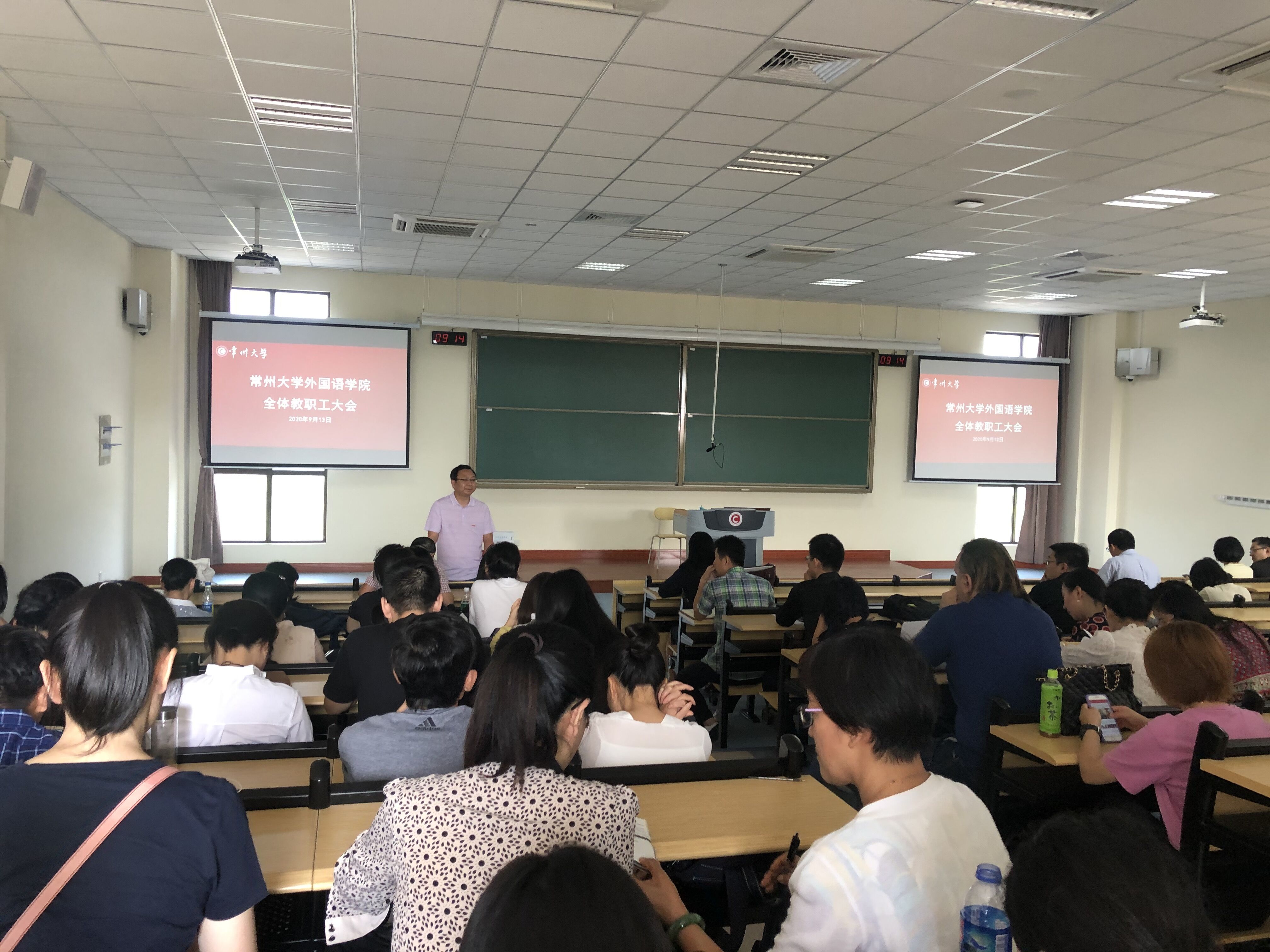 为全面做好2020年秋季学期各项工作,贯彻落实好学校新学期工作部署会议精神,有序做好在疫情防控常态化形势下的开学工作,9月13日上午,外国语学院在教学楼X3阶召开2020年秋季新学期教职工大会,会议由院党委书记薛勇主持,全体教师参加。