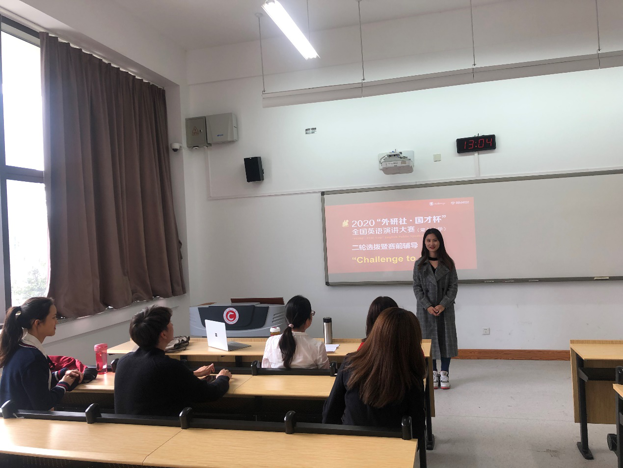 10月14日下午,“外研社杯”英语演讲比赛第二轮选拔在X107教室进行。此前获得校演讲比赛一等奖的四位同学参与了选拔。