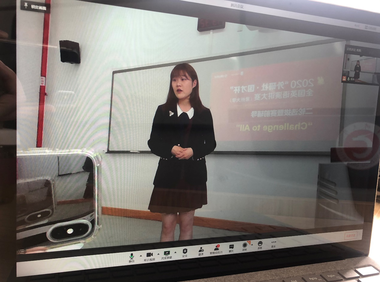我院演讲指导团队的韩燕、陆婷、杨逸老师在现场参与了选拔,团队其他老师通过腾讯网络会议参与并给予指导意见。之前参加校赛的部分选手也通过网络进行观看。本次竞赛选拔暨赛前辅导是我院演讲指导团队采用线上线下交互模式进行课下辅导的一种尝试。“后疫情”时代,教学模式的设计和呈现形式更加灵活和多样。面对新形势和新要求,团队希望通过不断的摸索和尝试,能够更好整合教学资源,提供更优更有效的教学服务,为探索我校英语第二课堂模式提供更多思路。