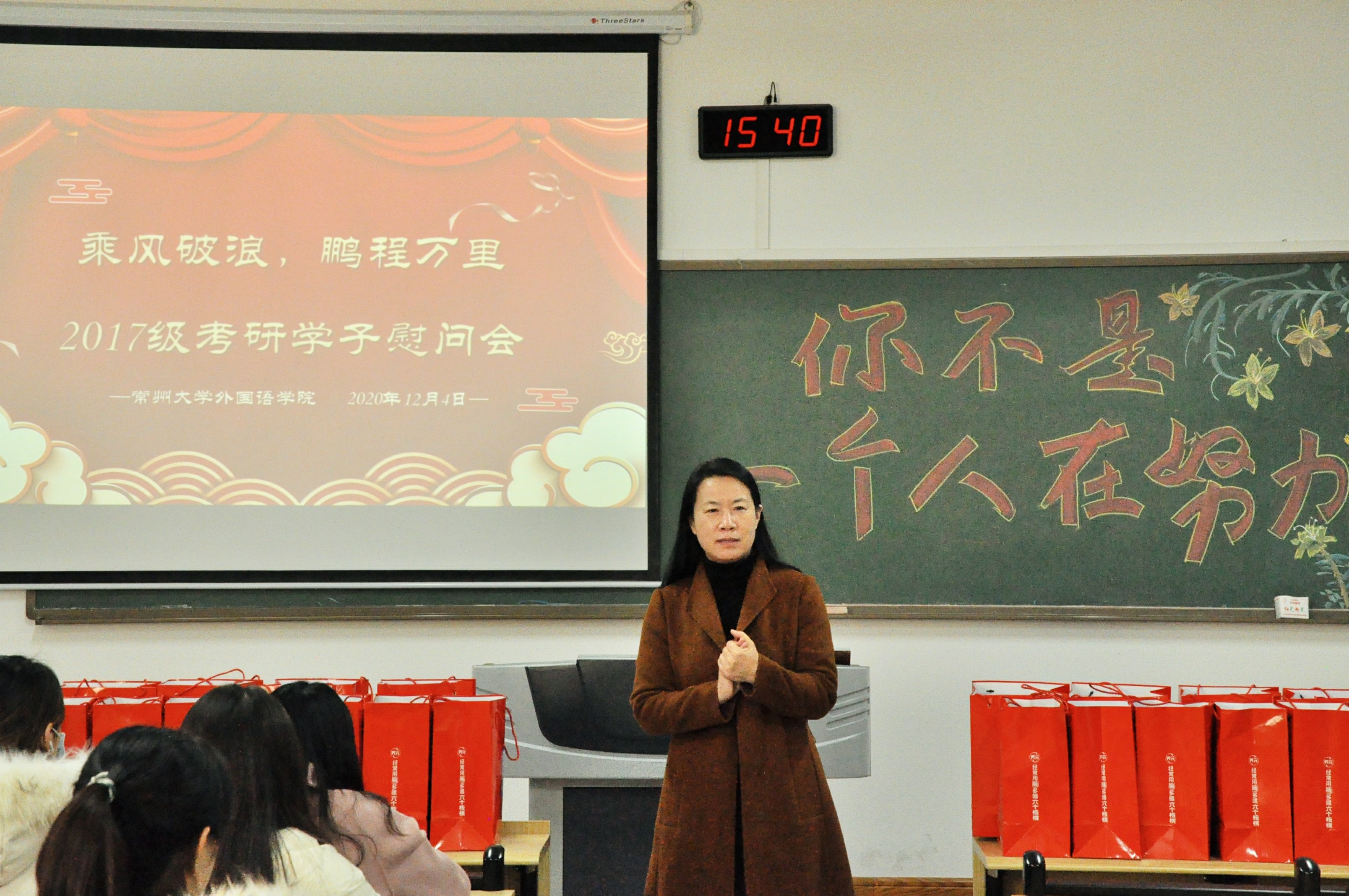 2020年研究生考试在即,为鼓励考研学子,外国语学院于12月4日在立德楼x203召开了2017级考研学子慰问会。会议由外国语学院辅导员徐竹君老师主持,院长陈颖、副院长陈林俊、党委副书记丁宪成、院学工办主任董斌荣来到现场,全体2017级考研学生出席。