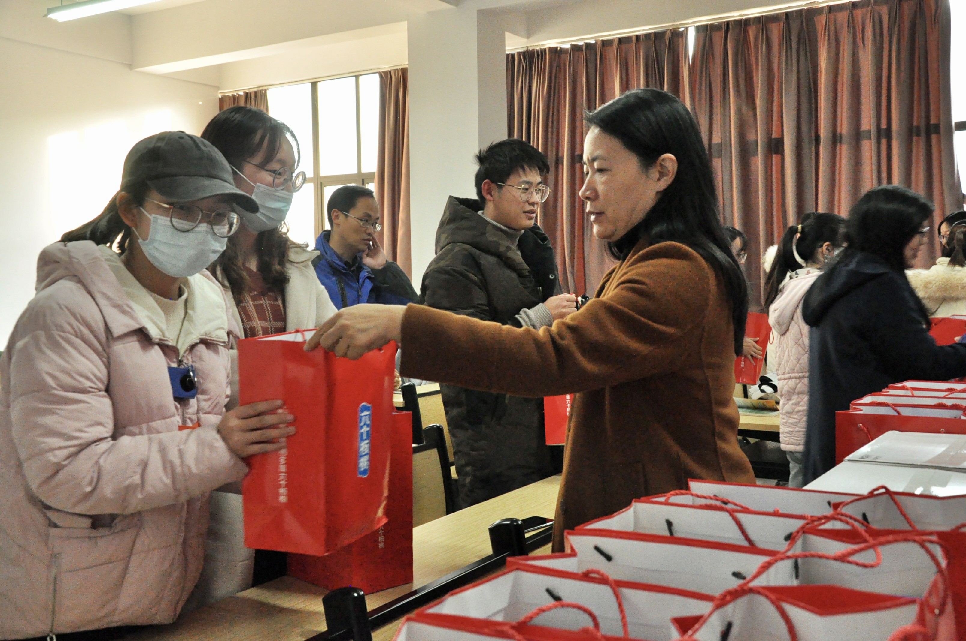 各位老师首先向考研学子表达了衷心的祝福。陈颖院长鼓励同学们抓住最后的一个月,百尺竿头更进一步,努力走向更高处,同时也提出愿意为同学们的考研路排除障碍,尽全力支持同学们的复习。接着几位老师给同学们送上了考研文具套装与健脑饮品,为同学们的复习提供助力。最后徐竹君老师祝愿同学们能考出佳绩,考取自己的理想院校。