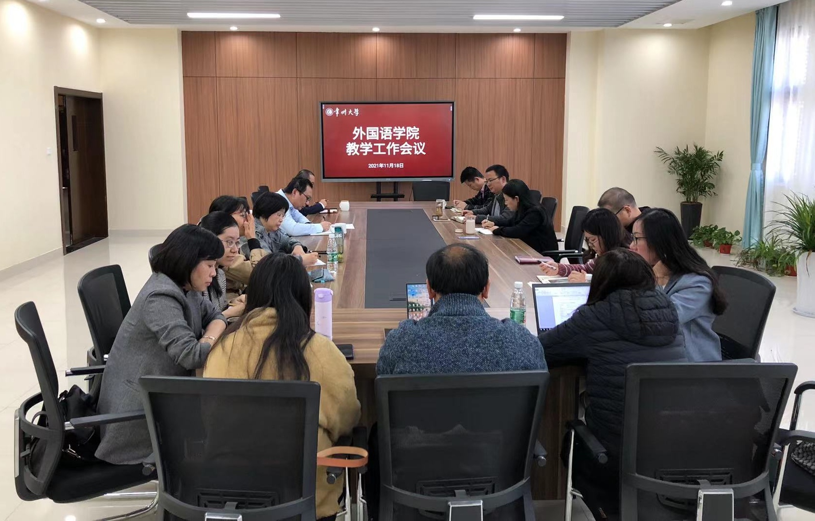 11月18日下午,外国语学院在西太湖校区立言楼431会议室召开期中教学工作会议。校督导刘丽芸、学院全体领导、各系部主任及专业负责人参加会议,副院长陈林俊主持会议。