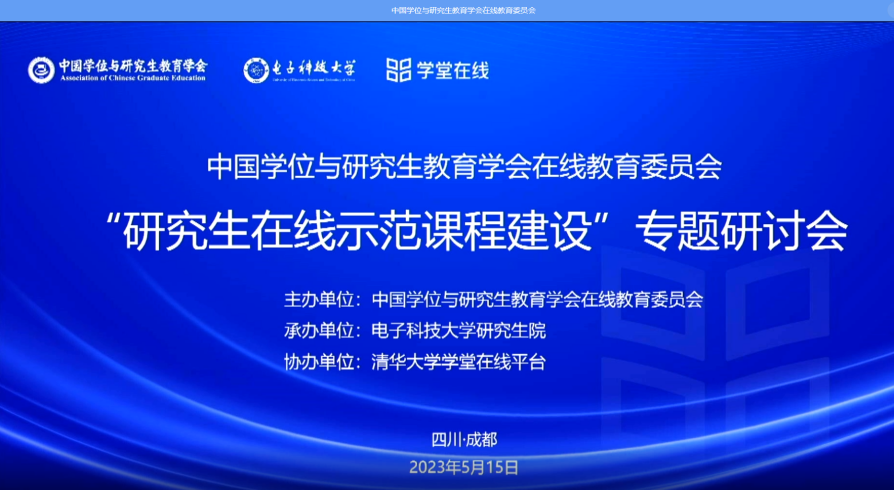 5月15日,中国学位与研究生教育学会在线教育委员会联合清华大学学堂在线平台组织开展“研究生在线示范课程建设”专题研讨会在电子科技大学举行,我院组织导师通过雨课堂线上参会。来自全国工程专业、工商管理专业、艺术专业和教育学专业的研究生教育指导委员会负责人围绕在线课程建设做主旨报告,相关高校研究生在线课程负责人做经验分享。