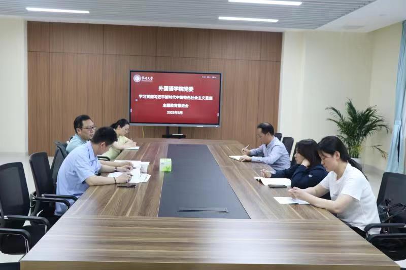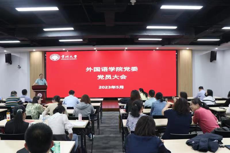 5月17日下午,外国语学院在西太湖校区立言楼多功能会议室召开全体党员大会,深入推进学习贯彻习近平新时代中国特色社会主义思想主题教育工作,会议由院党委书记薛勇主持。