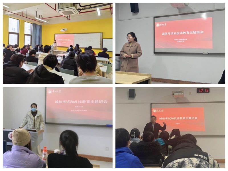 为增强学生反诈意识、全面贯彻落实学校有关考试的要求,形成良好的诚信之风,外国语学院开展诚信考试主题教育及反诈主题班会。本次班会由2022级、2023级班主任主持,2022级、2023级全体学生参加。