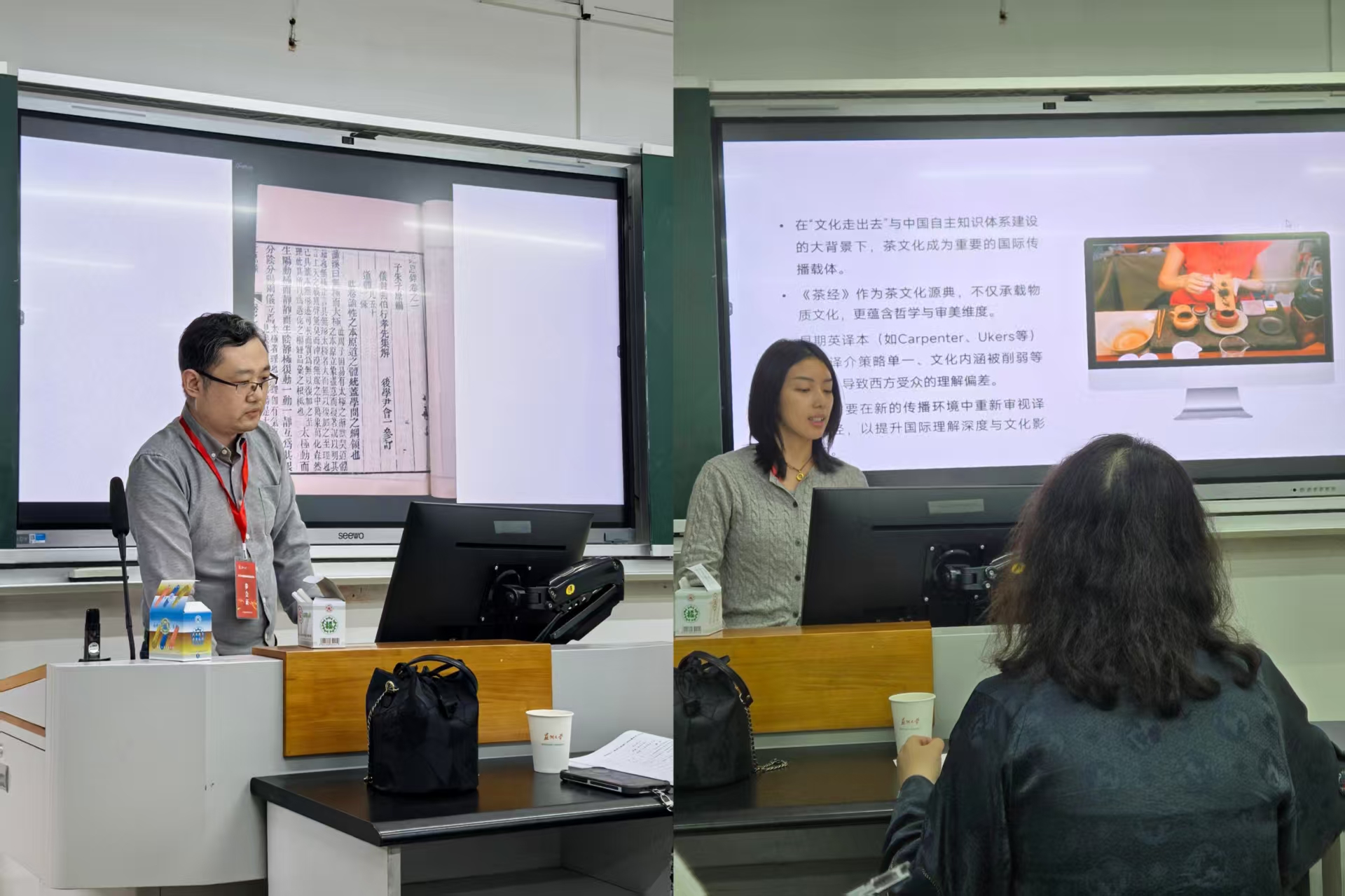 论坛邀请了河北师范大学李正栓教授、上海外国语大学胡开宝教授、深圳大学蔡新乐教授、河南大学刘泽权教授、南京师范大学许多教授、苏州大学孟祥春教授、南开大学张智中教授、大连外国语大学霍跃红教授、浙江大学冯全功教授等多名专家做主旨发言,并围绕典籍翻译理论的多元建构路径、译者行为批评研究、文学典籍的叙事重构与传播接受、民族典籍译介与中华文化共同体建构、数智赋能与翻译范式转型、儒释道典籍的跨文化阐释等多个议题进行了10组分论坛研讨。在分论坛中,我院研究生导师张帆和和2024级研究生陈思成分别做了题为《陈荣捷英译<近思录>的经学模式研究》和《他者之镜中的<茶经>:中华茶文化的世界性建构》的论文宣读。