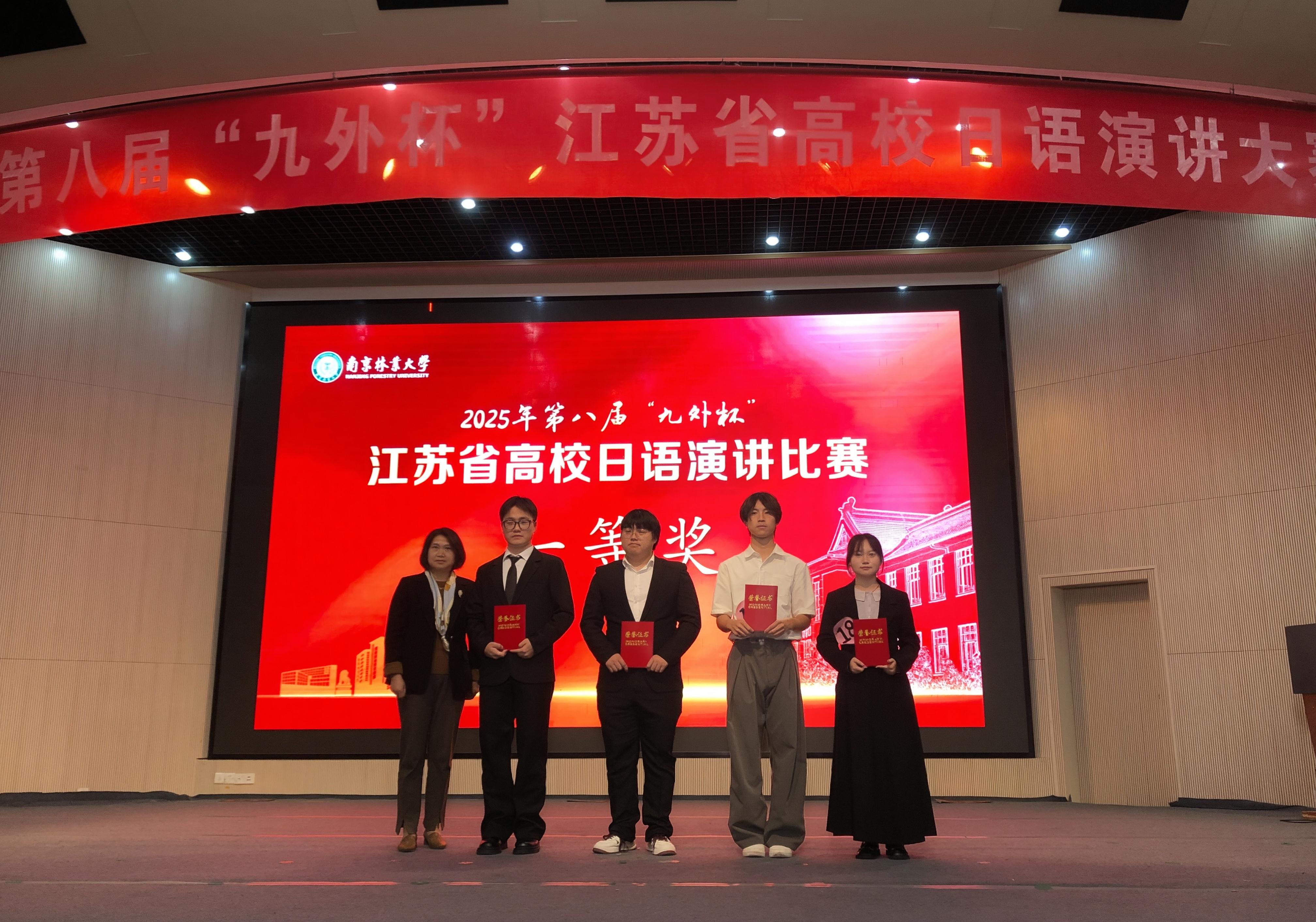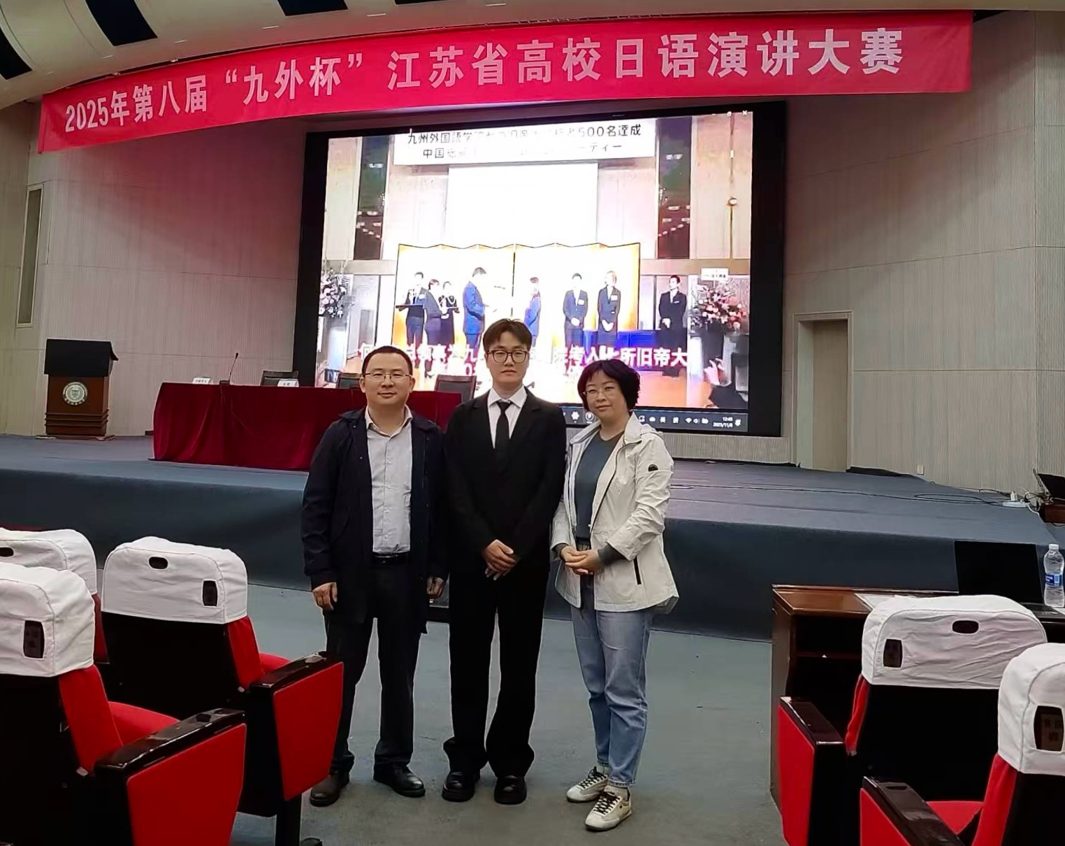 2025年11月8日,由江苏高校外语教学研究会日语分会主办、南京林业大学外国语学院承办、九州外国语学院协办的第八届“九外杯”江苏省高校日语演讲大赛,在南京林业大学新庄校区成功举行。本次赛事汇聚了江苏省各高校的28位优秀学子,我校日语223班王意同学在殷娟老师的全程陪伴和指导下,凭借扎实的语言功底和出色的临场发挥,最终荣获大赛一等奖,展现了我校学子的卓越风采。