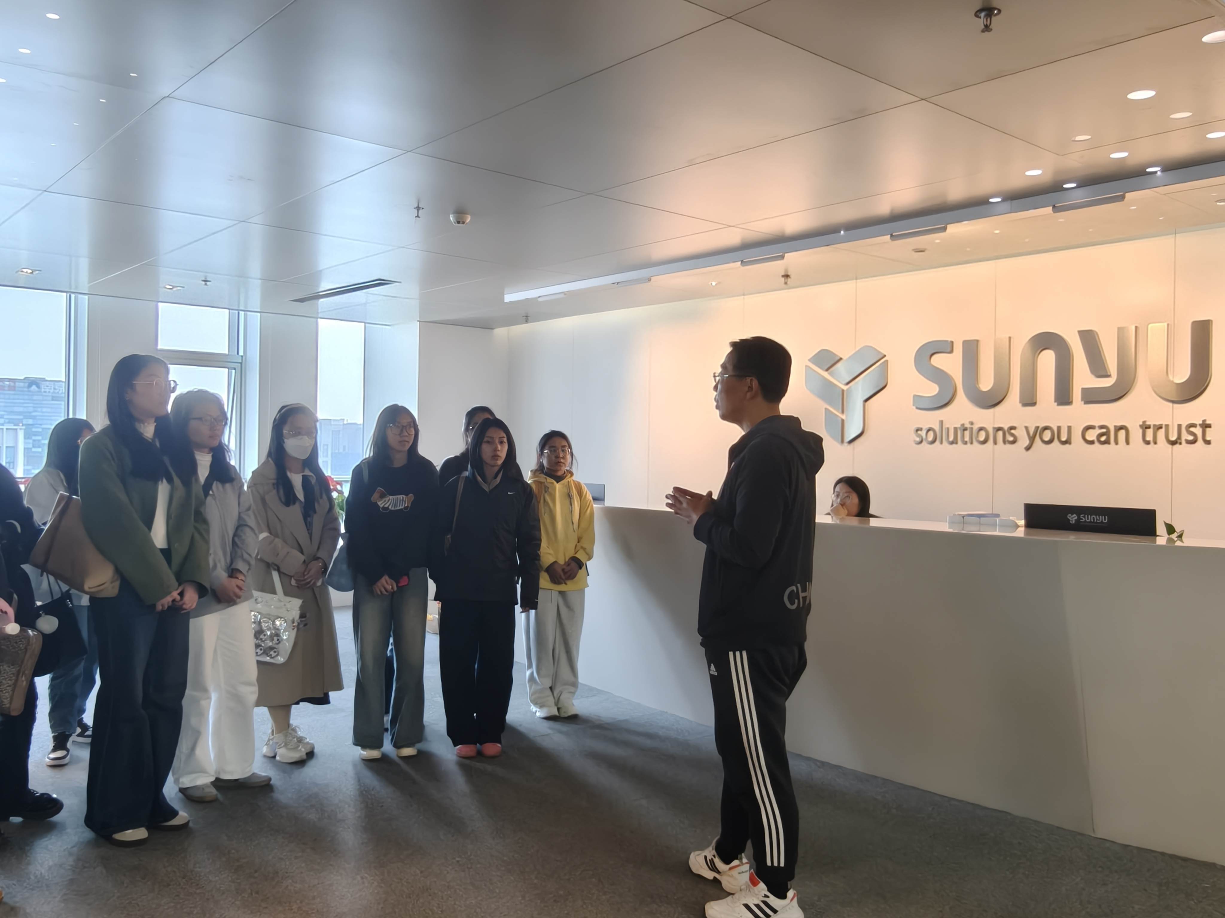 在陈尚坤副总经理、校企合作部唐丽杰经理引领下,师生一行对企业的办公环境及各业务板块进行了参观,详细了解了舜禹集团的发展历程、主营业务及创新成果,直观体验了该公司在语言服务、专利技术、人工智能与智能制造等领域的融合实践。