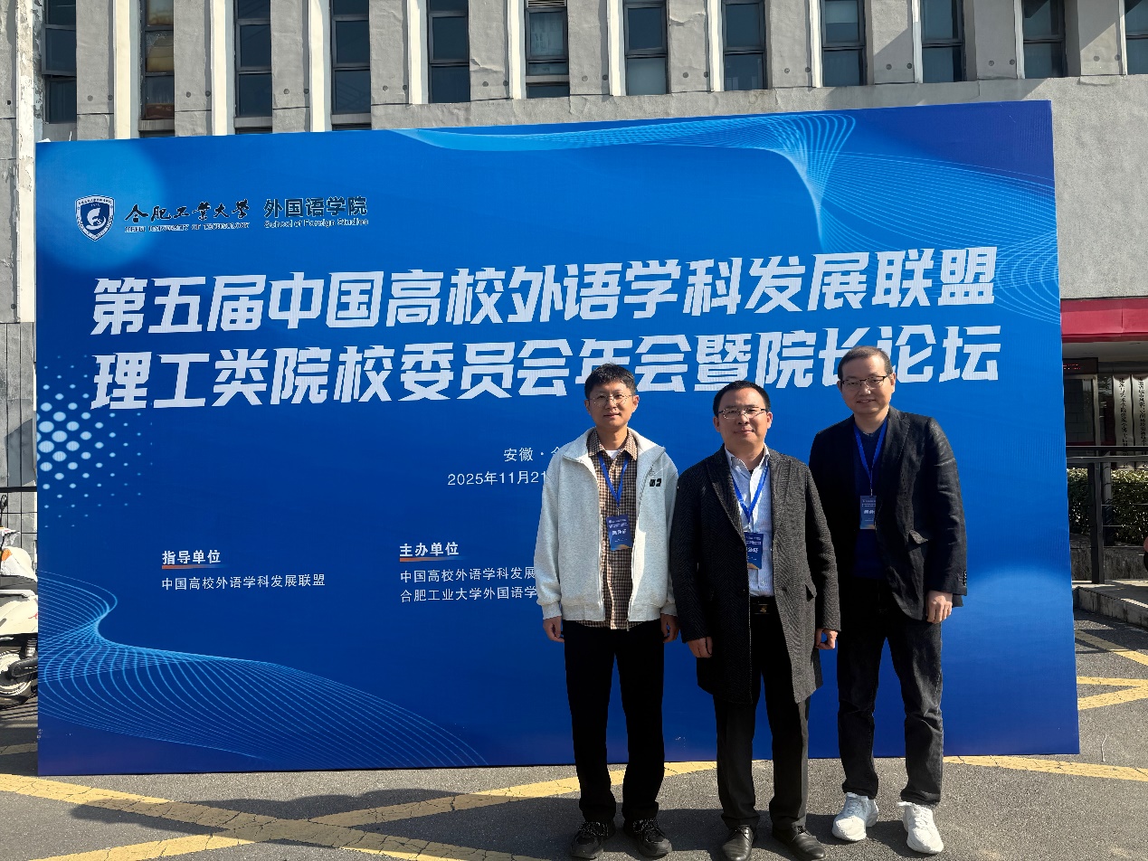 11月22日,第五届中国高校外语学科发展联盟理工类院校委员会年会暨院长论坛在安徽合肥召开。论坛由中国高校外语学科发展联盟指导,中国高校外语学科发展联盟理工类院校委员会和合肥工业大学外国语学院联合主办,来自全国多所理工类院校的外国语学院(系)负责人、学科专业负责人及专家学者参加研讨会。我院副院长兼日语系专业负责人陈林俊、英语系专业负责人周小川、西班牙语系副主任崔扬舟参加会议。