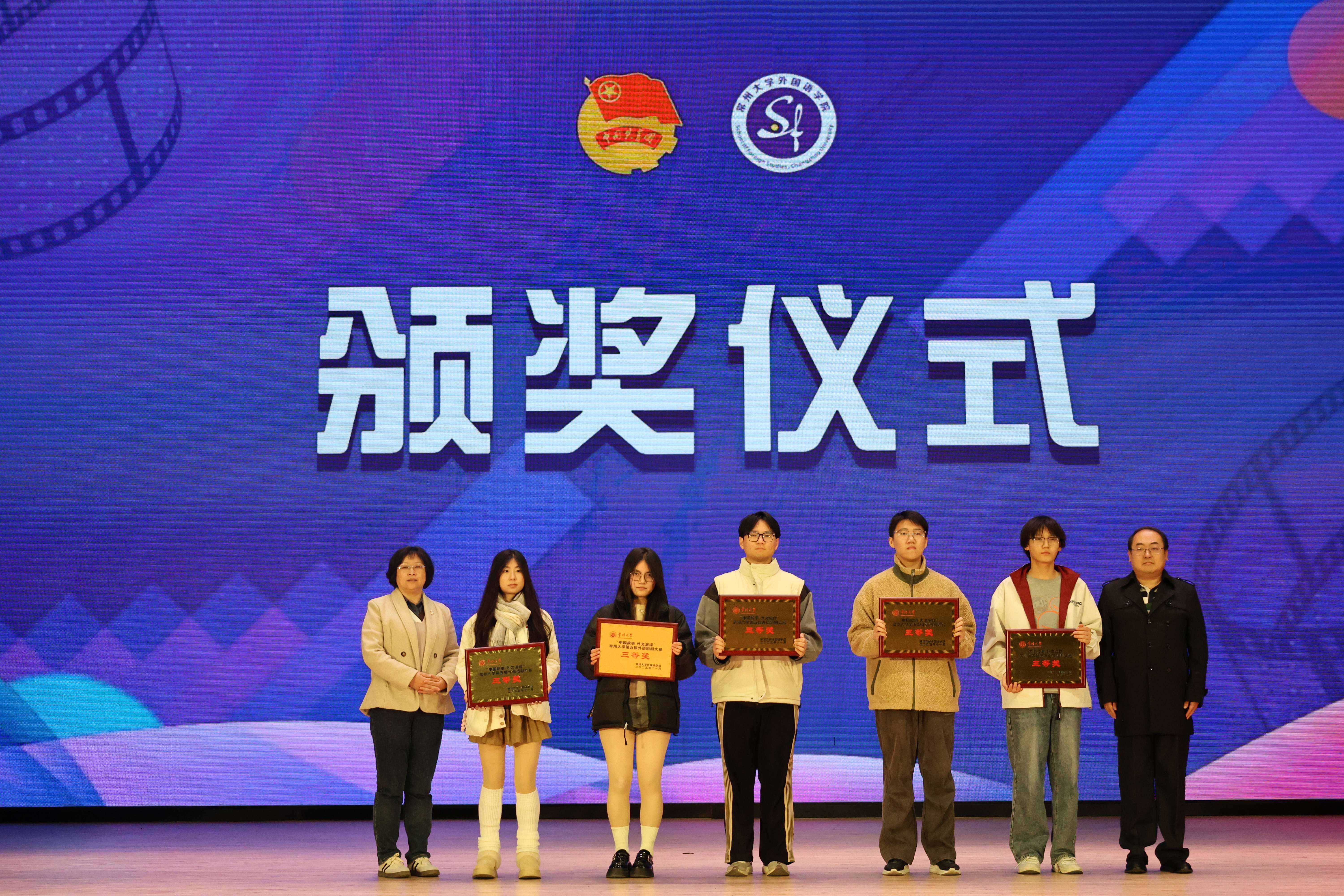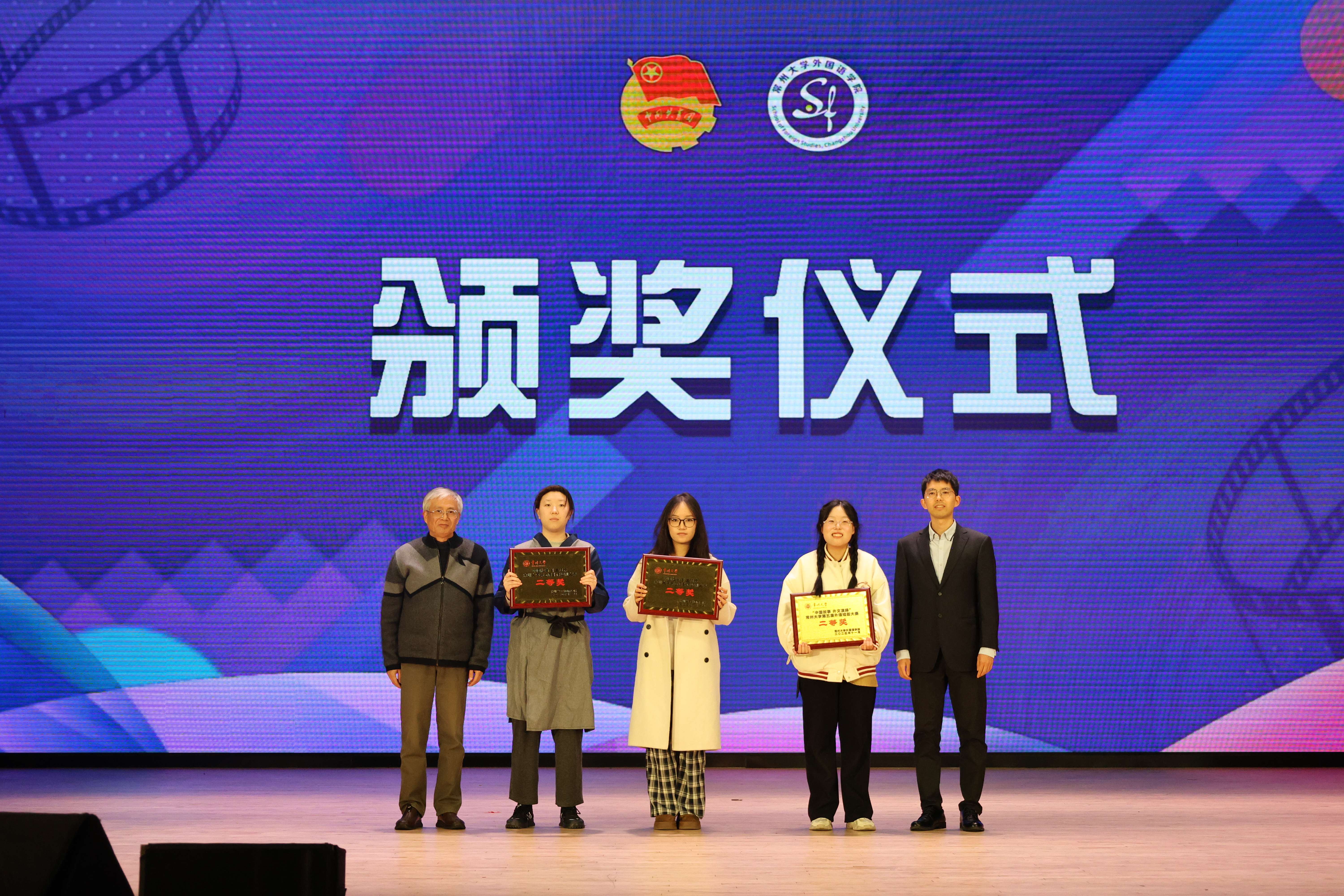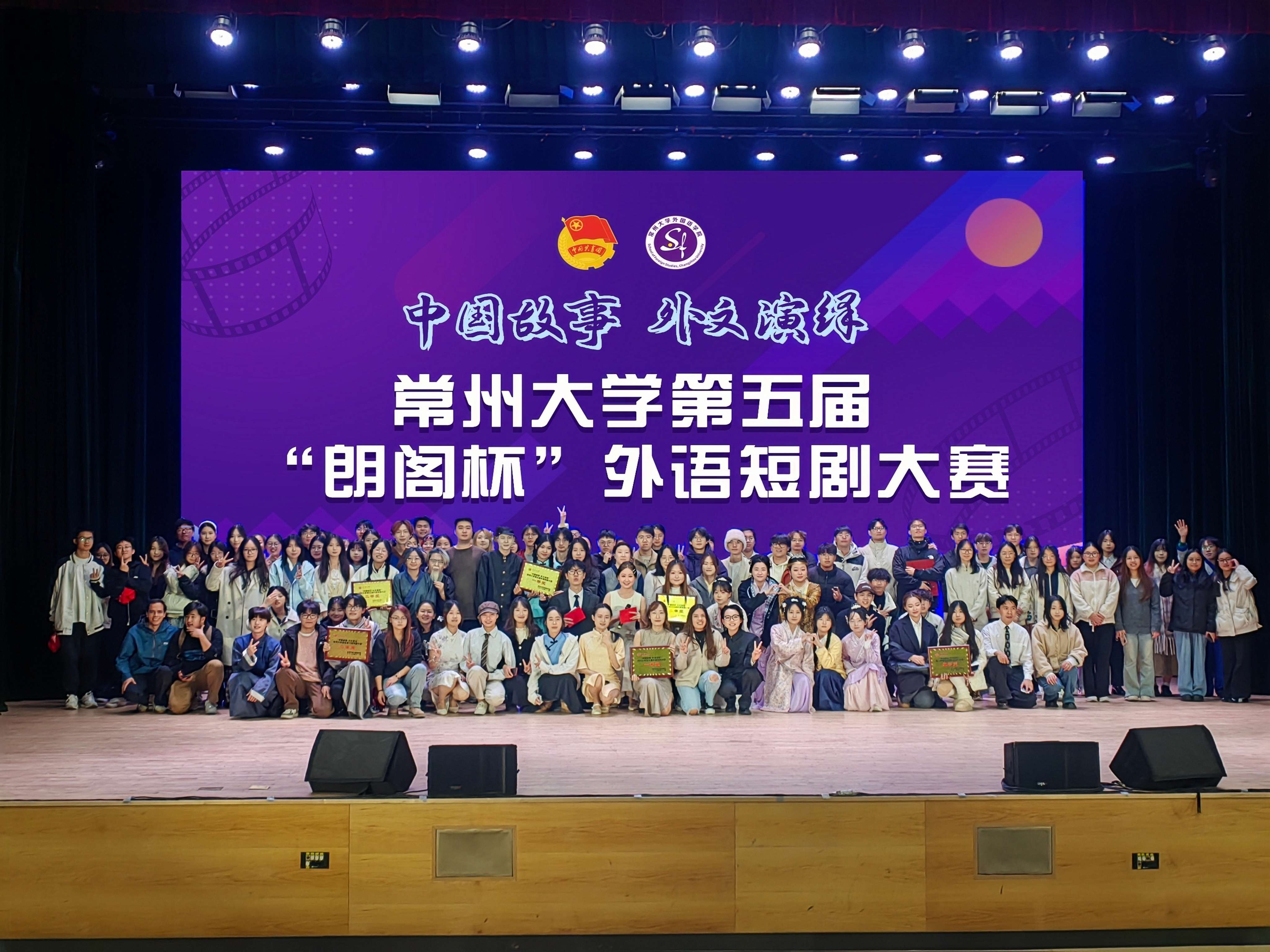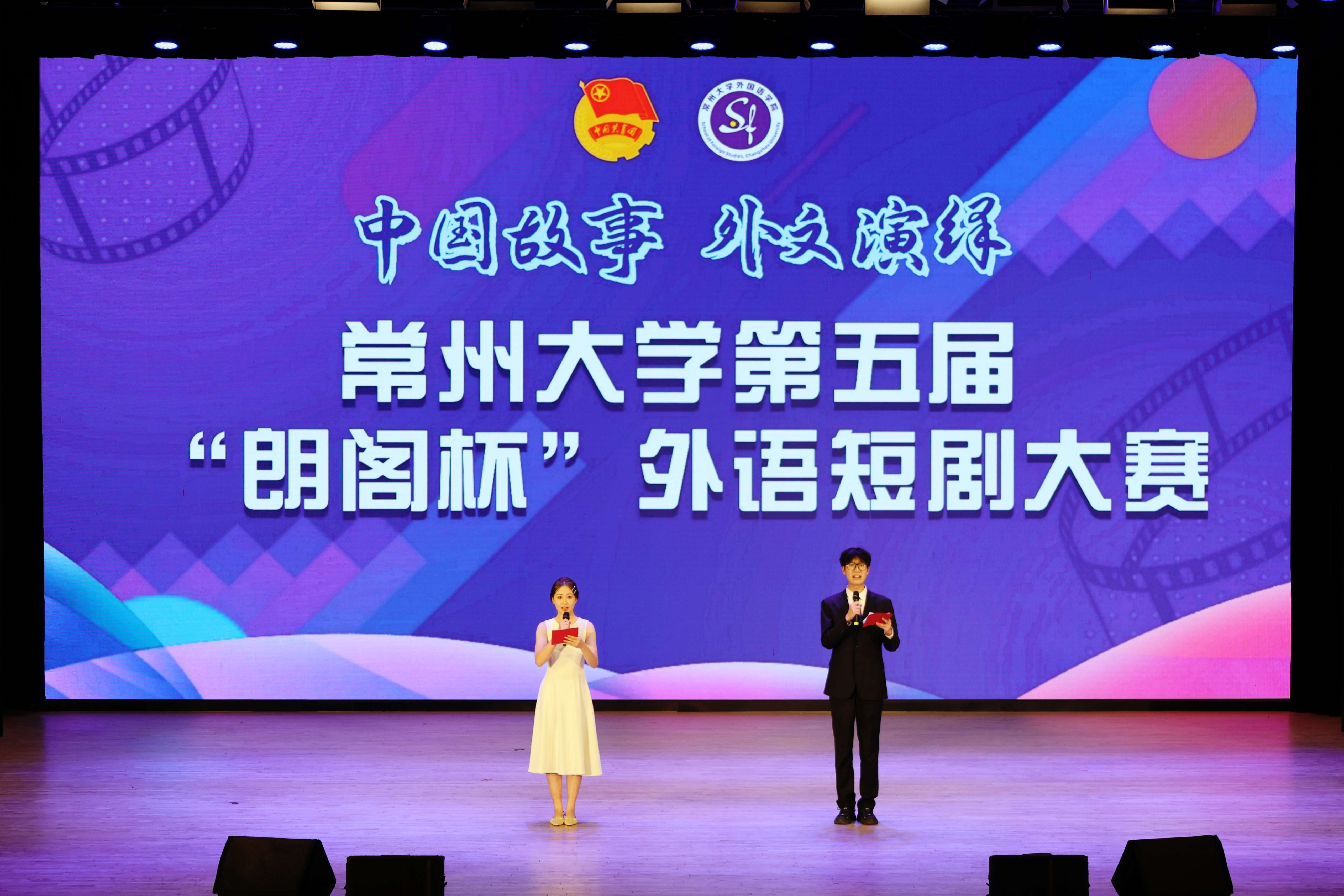 近日,由常州大学团委主办、外国语学院团委学生会承办的常州大学第五届外语短剧大赛在西太湖校区立艺楼大礼堂隆重举行。常州大学团委副书记董译文、外国语学院教授薛荣、外国语学院关工委姬宁生、院党委副书记蔡震宇、院长助理殷娟、校拉丁美洲研究中心主任许硕、常州朗阁教育集团教学总监翁宇杰及相关学院团委书记出席活动,共同见证这场“用外语讲中国故事”的舞台盛宴。