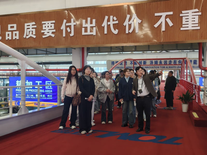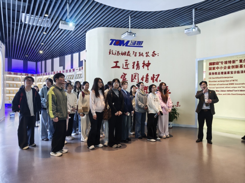 下午一点半,研学团抵达常州汤姆森智能制造有限公司。在集团培训中心负责人刘路的引导下,师生们参观了企业展厅,深入了解汤姆森集团的发展历程、企业文化及核心技术优势,从传统制造到智能制造的转型升级历程,让同学们对现代制造业的发展趋势有了直观认识。